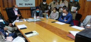 बिजनौर। विधान सभा सामान्य निर्वाचन-2022 को पूर्ण रूप से निष्पक्ष, पारदर्शी एवं स्वतंत्र रूप से सम्पन्न कराने के लिए मा0 प्रेक्षकगणों की अध्यक्षता में कलेक्ट्रेट सभागार में जिला प्रशासन द्वारा की जाने वाली निर्वाचन सम्बन्धी तैयारियों की समीक्षा बैठक आहूत की गई। इस अवसर पर सभी विधानसभा क्षेत्रों के लिए भारत निर्वाचन आयोग द्वारा नियुक्त मा0 प्रेक्षकगण, जिलाधिकारी उमेश मिश्रा, पुलिस अधीक्षक डा0 धर्मवीर सिंह, मुख्य विकास अधिकारी के0पी0 सिंह, अपर जिलाधिकारी प्रशासन विनय कुमार सिंह, अपर पुलिस अधीक्षक नगर डा0 प्रवीण रंजन सहित अन्य अधिकारी एवं लाइजन आाफिसर मौजूद थे।