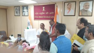 नई दिल्ली। भाजपा के पूर्व विधायक लुवकुश कुमार नगीना निवासी को राष्ट्रीय अनुसूचित जाति आयोग का सदस्य बनाये जाने पर क्षेत्र में खुशी का माहौल है। इसी को लेकर शेरकोट की रियासत कुँवर संजय गहलौत ने उन्हें दिल्ली पहुचकर लुवकुश कुमार को पुष्प गुलदस्ता भेट कर उन्हें दिली मुबारक बाद दी है। तथा उनके उज्ज्वल भविष्य की कामना की। कुँवर संजय गहलौत के साथ उन्हें बधाई देने वालो में अरविन्द गहलौत भाजपा जिलाउपाध्यक्ष, राजीव चौहान ,प्रमोद गुप्ता भाजपा वरिष्ठ नेता, आदि ने उन्हें शुभकामनाएं दी है।