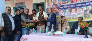 अफजलगढ़। सर्वोदय सामाजिक सेवा संस्था सीरवासुचन्द द्वारा क्षेत्र के ग्राम आसफाबाद चमन में स्थित राखी मैमोरियल इंटर कॉलेज में निर्धन जरूरतमंद लोगों को कंबल वितरण का आयोजन किया गया। कार्यक्रम के मुख्य अतिथि सीओ अफजलगढ़ आलोक सिंह,द्वारिकेश शुगर मिल के महाप्रबंधक उमेश कुमार बिसेन व थानाध्यक्ष रामप्रताप सिंह ने संयुक्त रूप से फीता काटकर कार्यक्रम का शुभारंभ किया। रविवार को कोतवाली क्षेत्र के ग्राम आसफाबाद चमन में स्थित राखी मैमोरियल इंटर कॉलेज में सर्वोदय सामाजिक सेवा संस्था द्वारा क्षेत्र के विभिन्न गांव के निर्धन व जरूरतमंद लोगों को करीब 250 कंबल का वितरण किया गया। संस्था के अध्यक्ष डॉक्टर तेजपाल सिंह चौहान ने जानकारी देते हुए बताया कि उनके संस्था द्वारा हर वर्ष क्षेत्र में निर्धन व असहाय लोगों को कंबल का वितरण किया जाता है। उनके संस्था द्वारा क्षेत्र में सामाजिक व अन्य कार्यक्रम भी किए जाते है। इसी के चलते आज संस्था द्वारा निर्धन व्यवसाय लोगों को कंबल वितरण किया गया। इसके अलावा उनकी संस्था द्वारा अब तक क्षेत्र में करीब 63 निर्धन कन्याओं का विवाह उनकी संस्था द्वारा करा दिए गए है। उनकी संस्था हमेशा गरीब लोगों के लिए खड़ी रहती है। संस्था का उद्देश्य गरीब व निर्धन लोगों को मुख्य धारा में लाना है। आज कार्यक्रम के दौरान तीन नई सदस्यों का संस्था की सदस्यता दिलाकर उनका स्वागत किया गया। संस्था आगे भी ऐसे कार्य करती रहेगी। कार्यक्रम के संयोजक देवेश चौहान व मास्टर संदीप कुमार ने कार्यक्रम में आए सभी अतिथियों का प्रतीक चिन्ह शाॅल उड़ाकर सम्मानित किया। इस मौके पर सीओ अफजलगढ़ आलोक सिंह के आलावा थानाध्यक्ष रामप्रताप सिंह,द्वारिकेश शुगर मिल के महाप्रबंधक उमेश कुमार बिसेन, प्रधान संघ के अध्यक्ष रमेश सिंह चौहान,ठाकुर रामबीर सिंह, पत्रकार प्रेस परिषद बिजनौर के जिलाध्यक्ष सुनील कुमार धस्माना,सतबीर सिंह, दुष्यंत सिंह, ठाकुर अंकित चौहान,मनोज पंडित,पूर्व प्रधान मास्टर पूरन सिंह,तारा शंकर,मास्टर संदीप सिंह,मास्टर सत्यवीर सिंह,मास्टर देवेश चौहान,समाजसेवी बसंत कुमार,उदयराज सिंह सहित भारी संख्या में संस्था के सदस्य मौजूद रहे।
