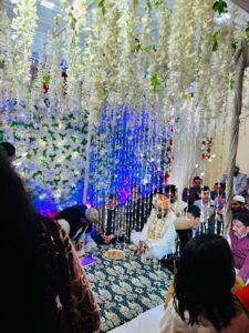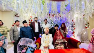 फराइज अंजाम दिए इस मौके पर हाजिरीन ने दूल्हा दुल्हन को मुबारकबाद पेश करते हुए शादीशुदा जिंदगी को खुशगवार आपसे प्यार मोहब्बत सकून और जिंदगी की तमाम कामयाबी के लिए दुआएं दी l
