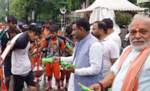 हरिद्वार से पवित्र गंगाजल लेकर प्रस्थान कर रहे शिवभक्तों को मेयर गौरव गोयल द्वारा जूस व फ्रूटी वितरित की
